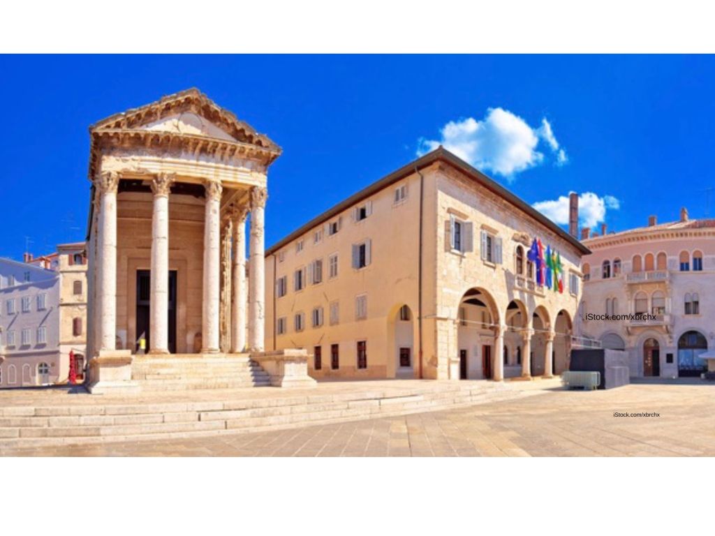 Today Pula is a patchwork of old and new influences. Ancient stone monuments stand next to pastel-colored Habsburg-era and Baroque buildings built during the Venetian Republic’s reign from 1331-1797.